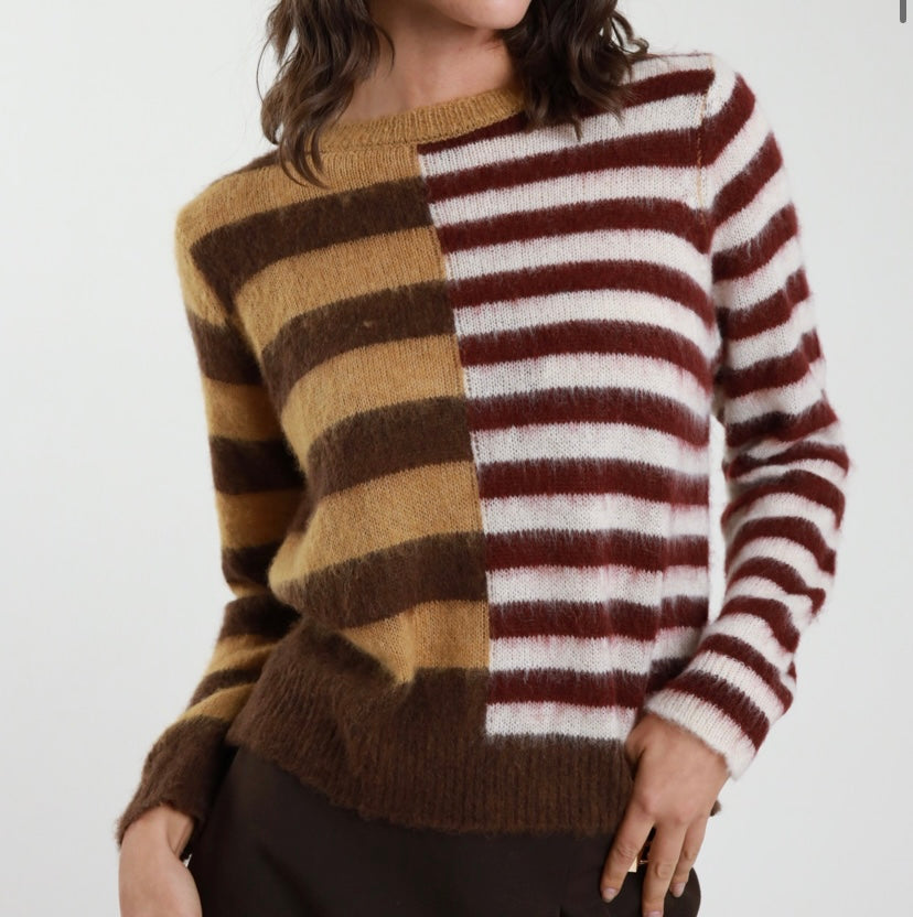 Pullover Girocollo con Doppia Fantasia Rigata.