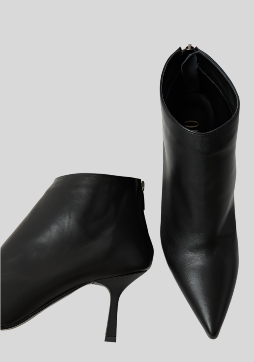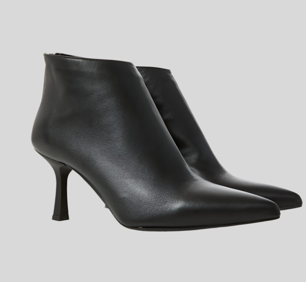 Tronchetto in pelle, cerniera sul retro, tacco 7 cm